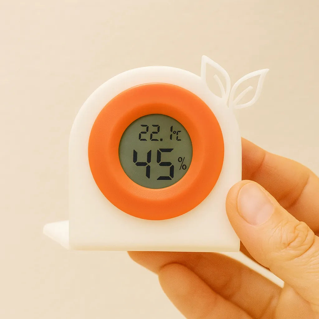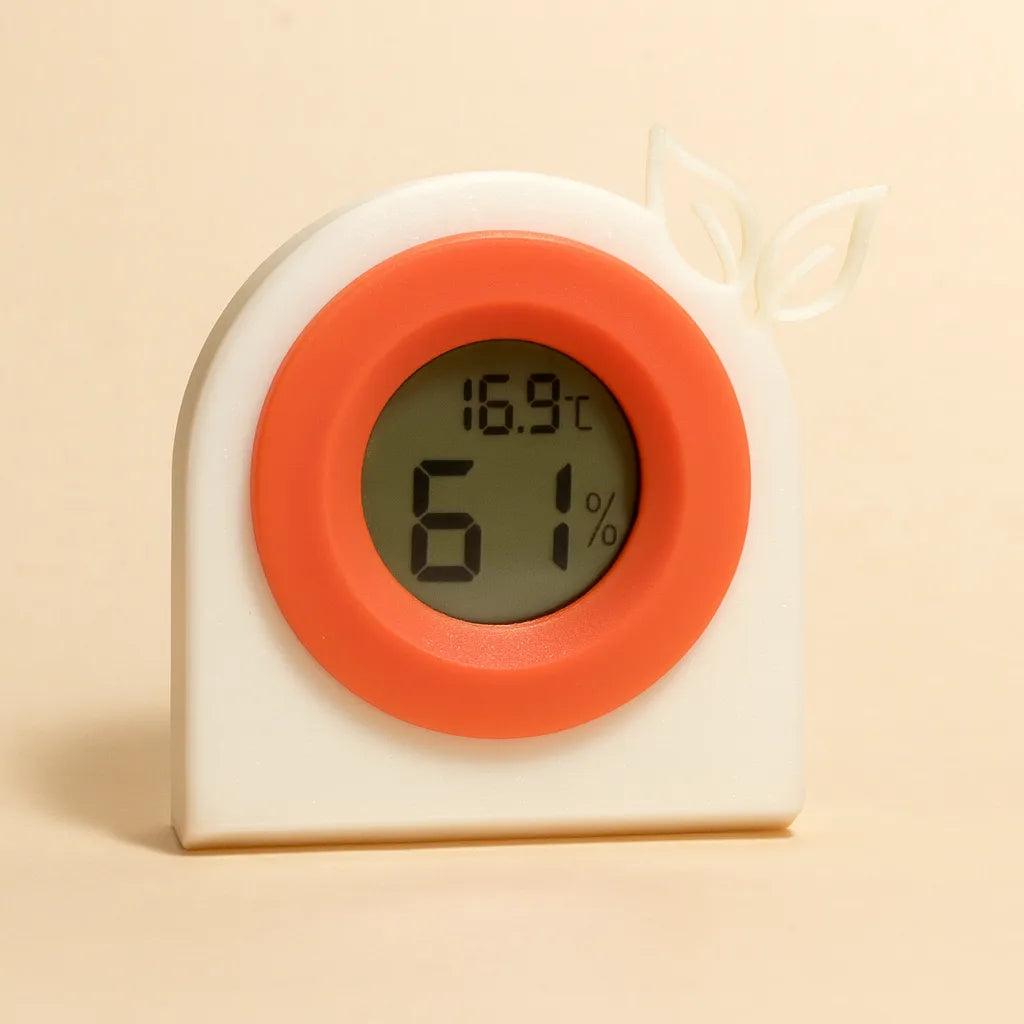 Monitorea la humedad y la temperatura ambiental para cuidar de tus plantas de interior con estilo. Este higrómetro redondo, con pedestal impreso en 3D en PLA+, es ideal para cualquier espacio.