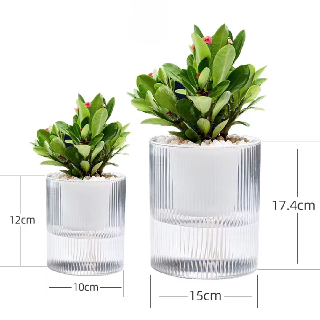 ¿Te gustan las plantas pero no la esclavitud del riego constante? ¡Tenemos la solución perfecta para ti! Nuestras macetas autoregantes transparentes son la alternativa ideal para mantener tus plantitas saludables sin preocuparte por el riego diario. Gracias a su diseño práctico, podrás saber fácilmente cuándo es necesario rellenar la base con agua.