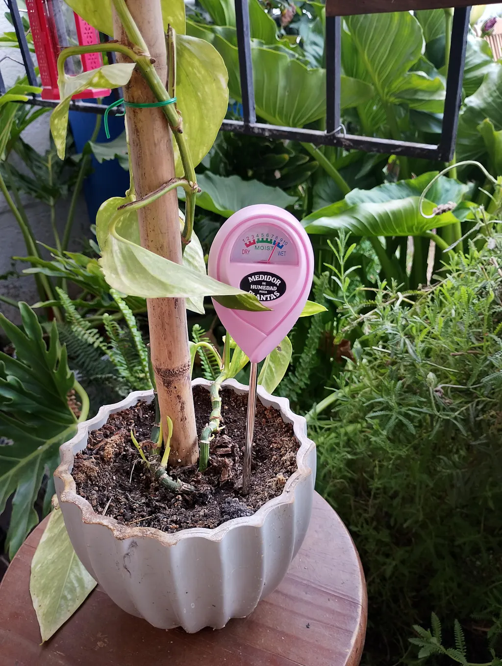 - Introduce el medidor hasta la base de tu maceta.