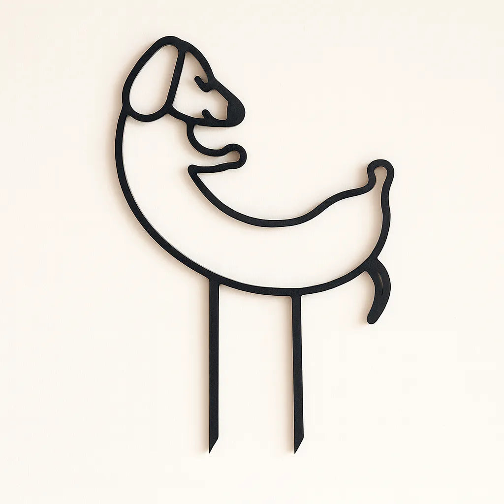 Diseño exclusivo: tutor con forma de perrito salchicha, pensado para amantes de las plantas y los perros.