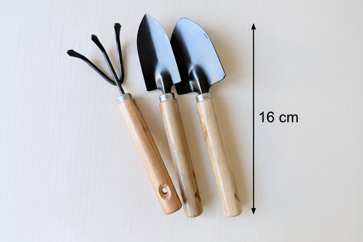 Set de herramientas de jardinería: lo esencial para trasplantes y mantención diaria.